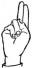 На ћирилици написано ЈЕЛЕНА БУМБАРЕВИЋ састоји се из 16 слова [?]. Исписано ћириличном једноручном азбуком за глувонеме: